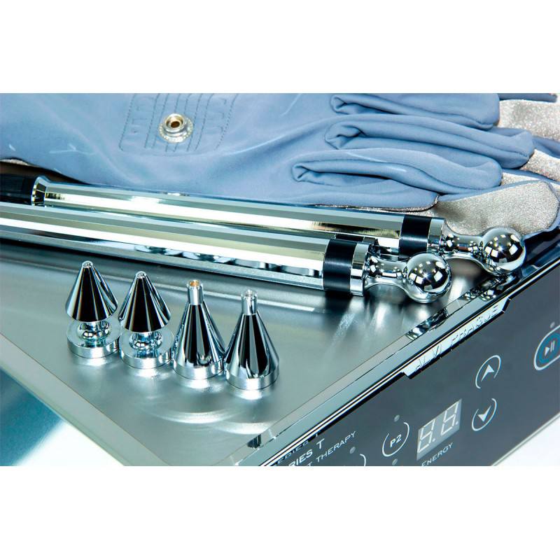 • Универсальность. Работа с лицом, шеей и телом с помощью манипул и токопроводящих перчаток позволяет предлагать комплексные программы для разных зон.