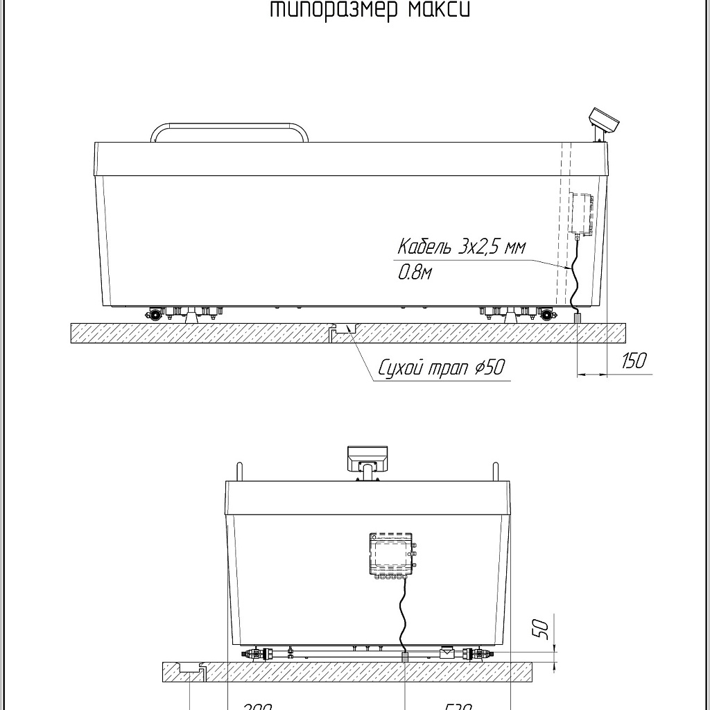 Масса ванны стандартной комплектации, не более, кг 370